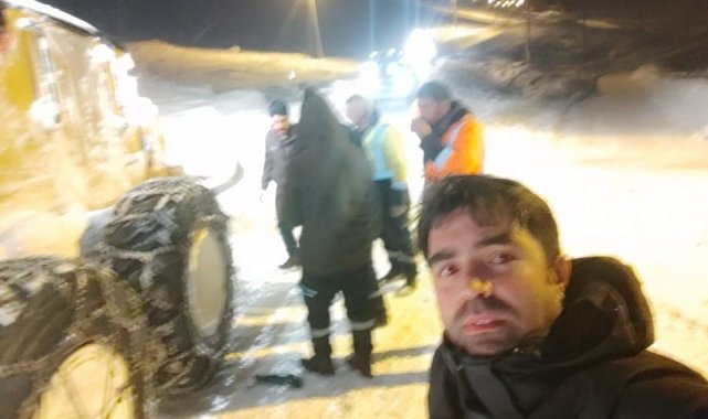 Yolda mahsur kalan 2 araç 7 saatlik çalışma sonucu kurtarıldı
