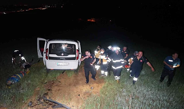 Yolunu şaşıran sürücü tarlaya uçtu, yaralılar emniyet kemeriyle hayata tutundu