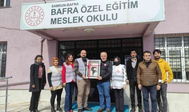 Yapılan anlamlı katkılar için öğrencileri adında teşekkür eden Bafra Özel Eğitim Meslek Okulu Müdürü Ramazan Öztoprak, öğrenciler tarafından yapılan tabloyu Dernek Başkanı Murat Değirmenci ve yönetim kurulu üyelerine hediye etti.