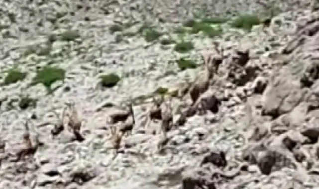 Tunceli'nin Ovacık ilçesinde bir vatandaş, yürüyüş yaptığı sırada nesli tükenme tehlikesi altında bulunan dağ keçilerini sürü halinde görüntüledi.