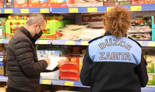Düzce Belediyesi Zabıta Müdürlüğü ekipleri il genelindeki yerel ve zincir marketlerde fahiş fiyat denetimlerini sürdürüyor. Zabıta Müdürlüğü ve Ticaret İl Müdürlüğünün işbirliği ile sürdürülen kontrollerde fiyat etiketleri kontrol edilirken gramaj denetimleri de yapılıyor.