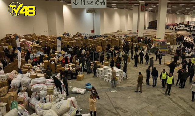 İzmir büyükşehir belediyesinin Fuar'da oluşturduğu yardım toplama merkezi, olağanüstü bir katılım var