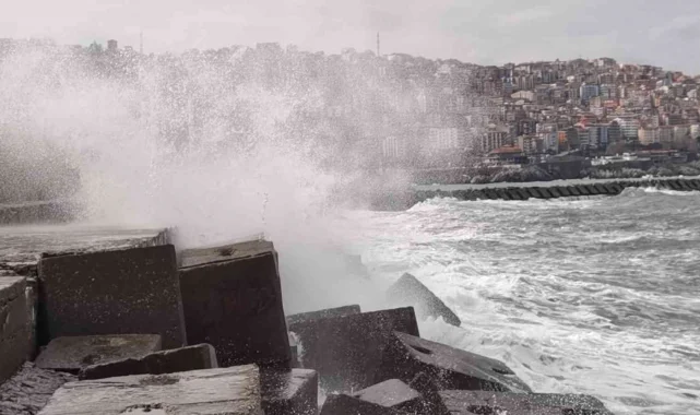 Zonguldak'ta dalgalar liman duvarına ulaştı
