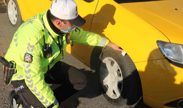 Polis ekipleri araçları tek tek durdurup, kontrol ettikleri lastiklerde ölçüm yaptı. Kar lastiği olmayan ticari araçlara 846 lira ceza uygulandı.